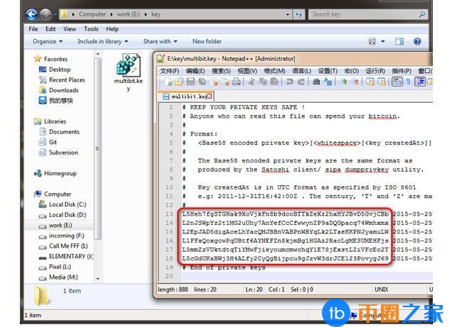 用记事本打开私钥文件multibit.key (UNIX 格式),即可以看到所谓的比特币地址的私钥:用记事本打开私钥文件multibit.key (UNIX格式),即可以看到所谓比特币地址的私钥: