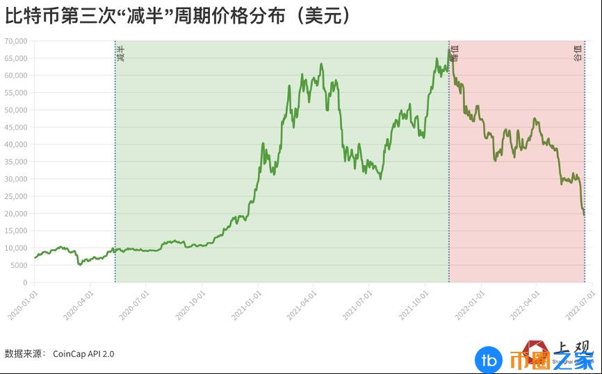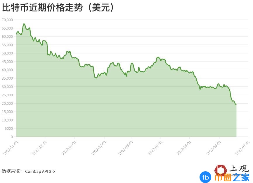 然后短暂反弹。截至记者发稿时,比特币价格约为2万美元,距离高点约6.9万美元,已经下跌了70%。