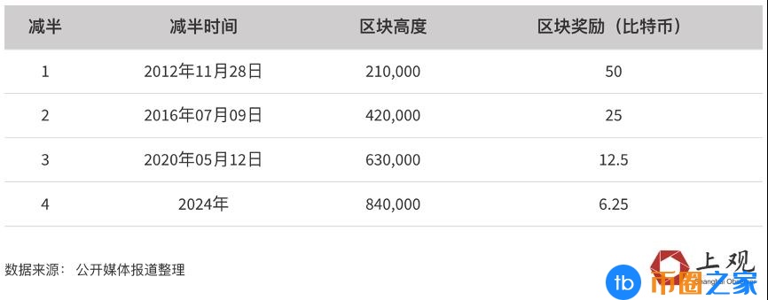 2012年、2016年、2020年,比特币区块奖励已经减半三次,挖矿奖励从原来的50个比特币增加到6.25个比特币。比特币每减半一次,都会减缓新比特币进入供应的速度,直到2140年没有新的比特币被创造出来。