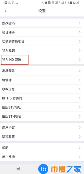 2.钱包首页-我的菜单-右上角档位设置按钮-导入高清密码-从高清密码中选择或者从老苦的二维码中选择。