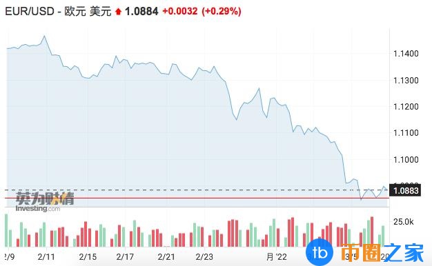 东方期货高级外汇分析师袁涛在接受第一财经记者采访时表示,乌克兰局势带动了市场的避险情绪,影响了欧洲经济的供应链和通胀,导致欧元持续下跌。