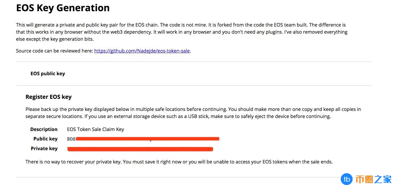 之后会生成下面EOS的公钥和私钥。注意,两者都保存完好。建议用非连接相机拍摄。或者存两个质量更好的u盘。(安全意识)