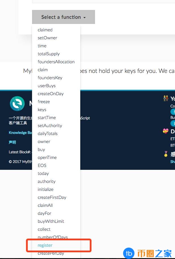 步骤二,去https://www.myetherwallet.com/#contracts 调用调用合约register