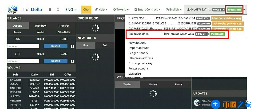 创建之后进入主页面就可以操作买卖币了,红线处是你的钱包地址,想看到完整的部分可以点击右边的三个点创建后就可以进入主页面操作买卖币了。红线是你的钱包地址。如果你想看到完整的部分,你可以点击右边的三个点。