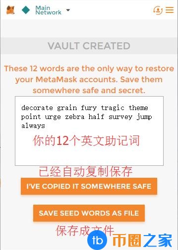 创建之后就会跳到助记词页面,找个安全的地方记下你的钱包助记词,以后恢复钱包的时候需要用到创建好之后,你会跳转到助记符页面,找一个安全的地方记下你的钱包助记符,以后恢复钱包的时候会用到。