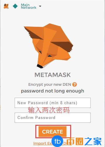 点击之后,系统会跳转到这个页面。在创建钱包和导入现有钱包这两个选项中,我们以创建钱包为例:
