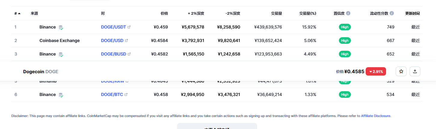Dogecoin 今日价格 为 ¥0.458121 CNY,其 24 小时的交易量为 ¥2,760,840,141 CNY。 我们会实时更新DOGE兑换为CNY的价格。 Dogecoin 在过去 24 小时内下跌了 2.67。 目前的 世链财经排名为第 #9 位,其市值为 ¥60,779,284,532 CNY。 其流通供给量为 132,670,764,300 DOGE 个货币 目前无法提供供给量上限信息。