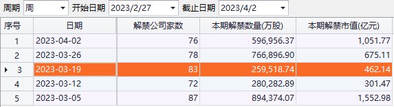 公开数据显示,下周(3月13日至19日)A股市场解禁规模环比本周略微回升,届时将有83只股解禁,按照最新收盘价计算,合计解禁市值462.14亿元,比本周多出逾160亿元。