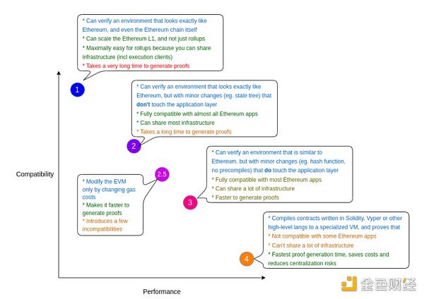 不同兼容度的 zkEVM (来源:Vitalik Buterin 博客)