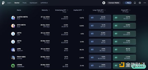 Pendle 通过将资产分为基本代币和收益代币,提供非常高的收益。