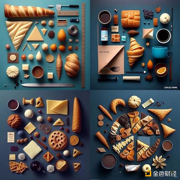 如果提示词不够贴切,效果也就平平无奇,就像你采访一个大佬,却无法提出好问题。 我的同事小黄正在探索用 Midjourney 绘制食物,但让食物排列整齐这件事,就让他犯了难。他尝试了很多句子:东西整齐地放在桌子上,镜头从上往下拍,摆放的数量要多少......