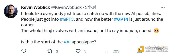 当然也有人表示担忧,飞速发展的AI是否会开启人类的末日?