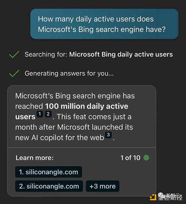 前有ChatGPT用时俩月月活破亿,今有ChatGPT版必应用时一月日活破亿,微软真的是在不断创造奇迹。