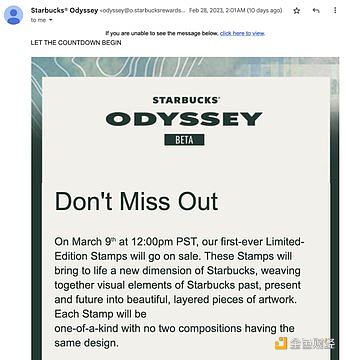 星巴克 12 月开启Odyssey内测时就剧透了会有限量版付费Stamps,2 个月后发出第一封预告邮件,然后每隔几天有一次 Sneak Peak, 节奏掌握的还不错。