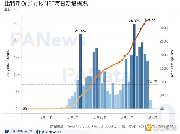 PAData 综合了比特币的链上数据(1 月 21 日至 3 月 7 日)和 OrdinalsNFT 的交易数据对当前的 NFT 类型、交易规模、用户规模、矿业变化和网络基本面进行分析,结果显示: