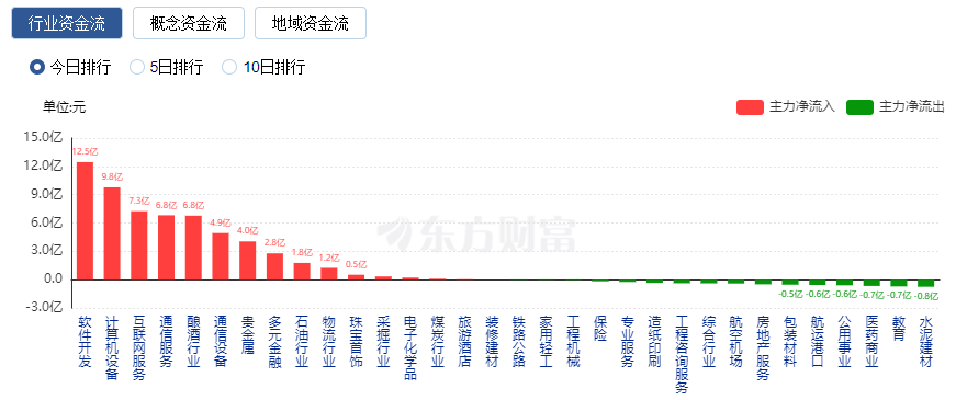 行业资金流向:软件开发净流入13亿