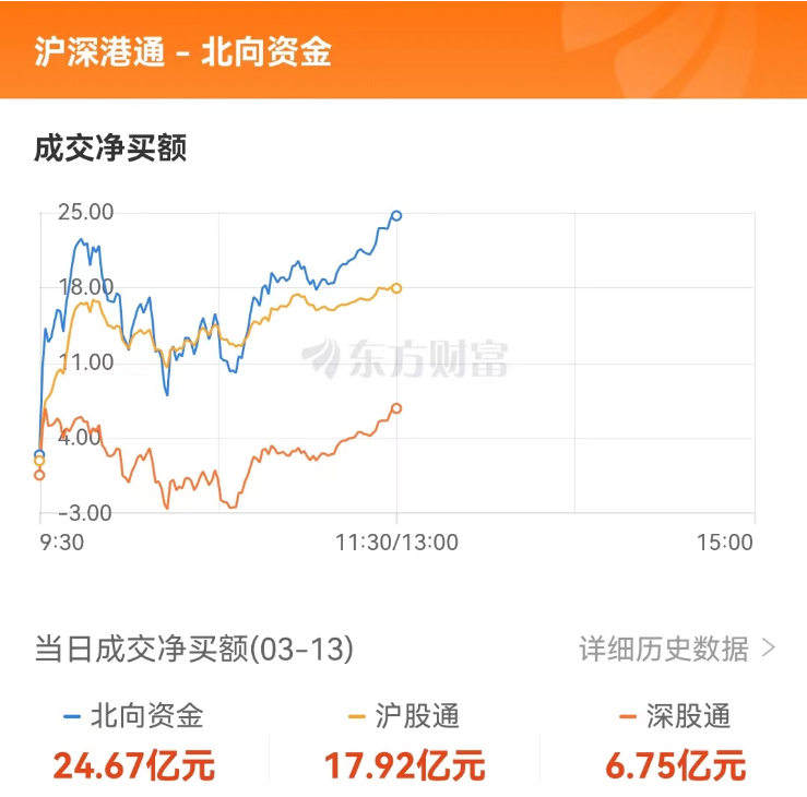 北向资金:净流入25亿元