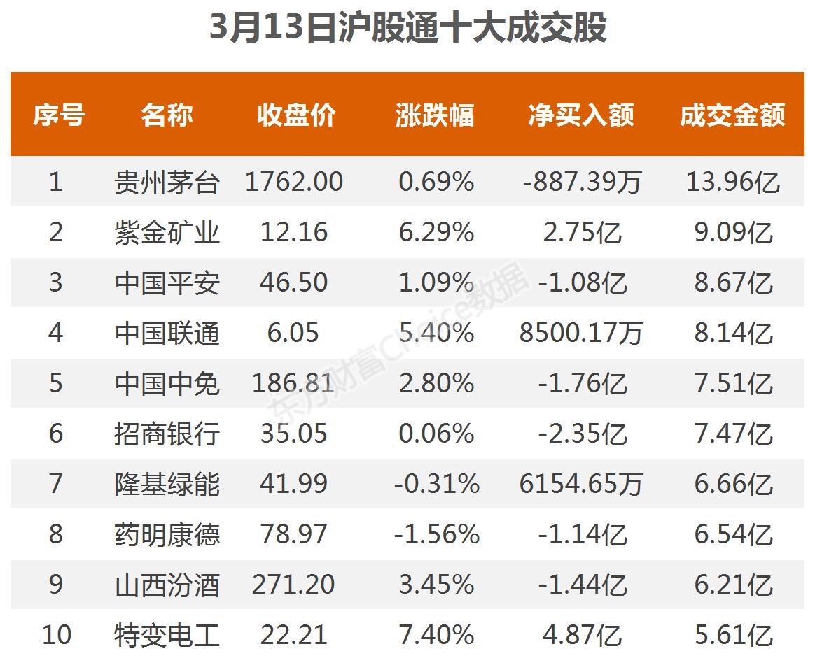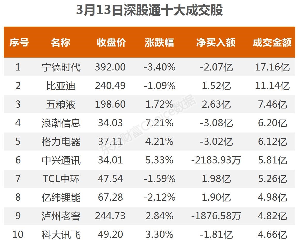 3月13日北向资金最新动向(附十大成交股)