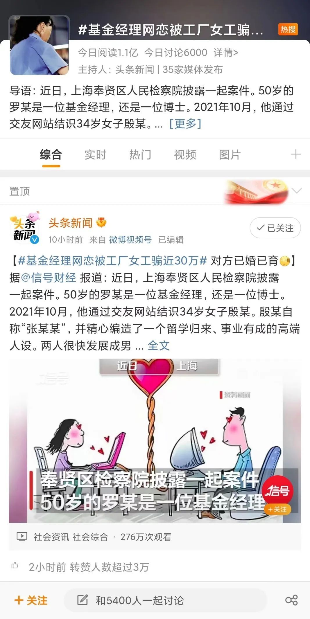 近日,上海市奉贤区人民检察院公号“奉贤检察”曝光了一起某基金经理在网上巧遇“白富美”,没有好好分析情况就半个月确立关系,随后打了近30万元,最终发现自己被骗了。哭鼻子的案件