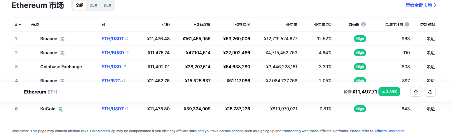 鉴于以太坊是仅次于比特币的第二大加密货币,因此可以购买以太坊,或在几乎所有主要加密货币交易所使用 ETH 交易对。一些最大的市场包括: