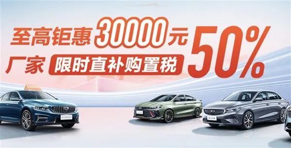 3月13日,吉利汽车发布购置税减半的限时补贴政策,补贴最高可达3万元。