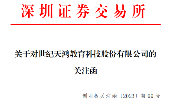 同在13日晚,“10转7”的世纪天鸿虽然股价没有泽宇智能那么明显的异动,但同样收到了监管关注函。