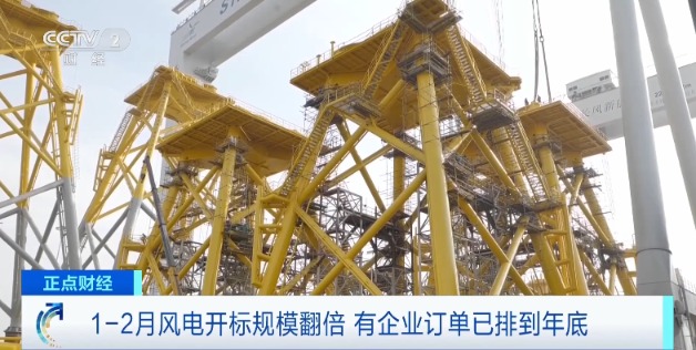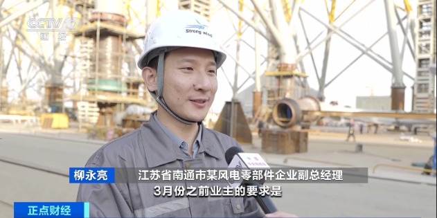 江苏省南通市某风电零部件企业副总经理柳永亮:3月份之前业主的要求是每个月发货6台导管架,但这个月已经要求发货9台,4月份要求发货12台。我们现场都是24小时不停地赶工。