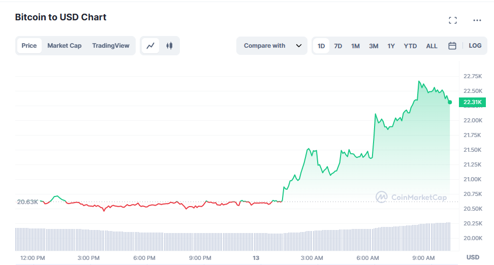 尽管硅谷银行(SVB)事件后,美国金融监管机构周日采取行动,设立了一个由财政部提供资金的规模为250亿美元新贷款计划,该计划旨在为存款机构提供必要的流动性。受到该消息影响,加密货币市场整体大幅上涨,比特币(BTC)大涨逾10%,突破22000美元关口;以太坊(ETH)最高上涨12%,一度突破1600美元关口,此前和美元脱钩的稳定比USDC目前重返1美元。