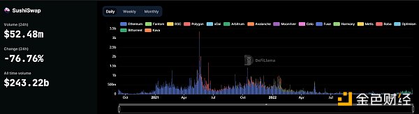 不过根据DeFiLlama数据,此前一周SushiSwap的日均交易额并未出现较大幅度增长,本文撰写时过去24小时交易额为5248万美元,反而下降了76.76%。