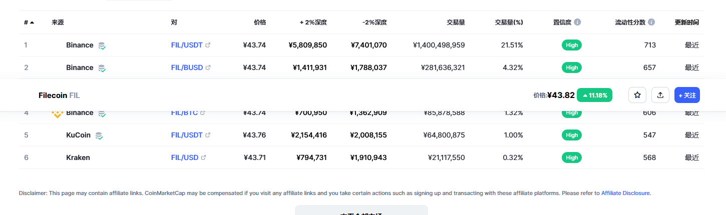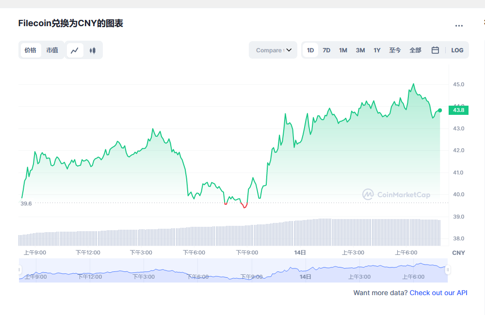 Filecoin 今日价格 为 ¥43.53 CNY,其 24 小时的交易量为 ¥6,512,329,044 CNY。 我们会实时更新FIL兑换为CNY的价格。 Filecoin 在过去 24 小时内增长了 16.10。 目前的 世链财经 排名为第 #27 位,其市值为 ¥17,552,321,634 CNY。 其流通供给量为 403,237,759 FIL 个货币 目前无法提供供给量上限信息。