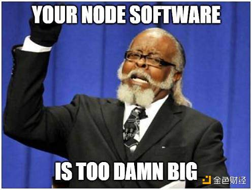 除了中心化难度炸弹,中心化开发人员决策、中心化验证和/或中心化检查点权限问题之外,还有一个简单的问题,在大多数情况下,智能合约区块链节点太大了。