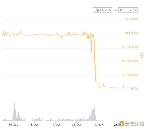 这在以太坊上可能发生的最糟糕的情况已经在 Solana 身上发生了。在 Solana 上有封装的比特币和以太坊,允许这些资产在 Solana 生态系统内杠杆化或交易。但问题是,FTX 是这些资产的发行者,而现在 FTX 已经破产。结果,这些托管资产与美元脱钩,几乎失去了全部价值:
