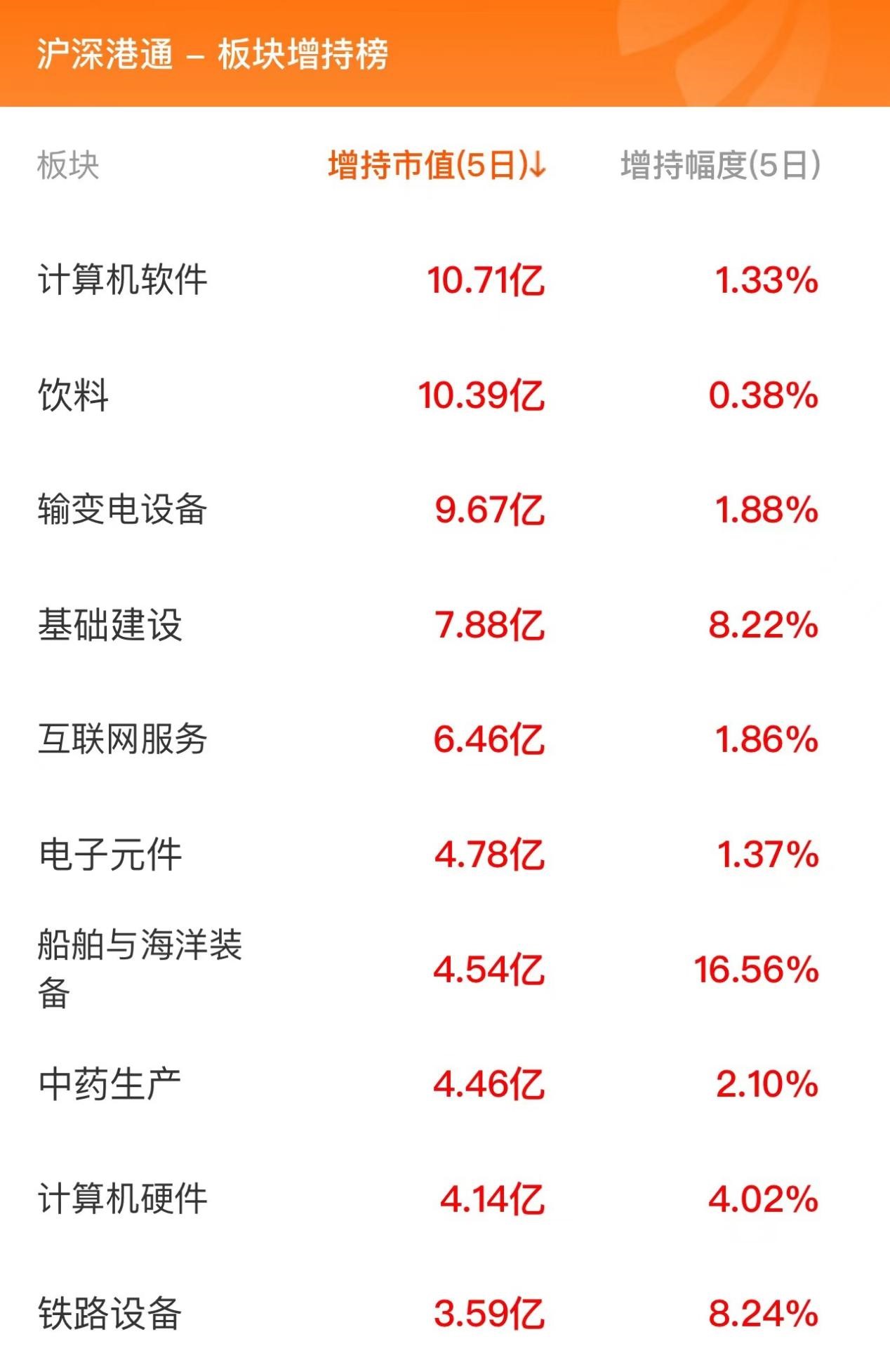 数据显示,近五个交易日,北向资金增持计算机软件板块10.71亿元,增持饮料板块10.39亿元,增持输变电设备9.67亿元。此外,耐火材料板块近五日增持幅度最大,达38.97%。
