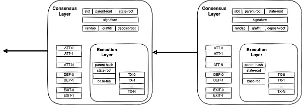 在理解Blob架构之前,先需要说明一个概念:Execution Payload(执行负载)。在以太坊合并之后,分出了Consensys Layer和Execution Layer,它们分别负责两个主要功能: 前者负责 PoS 共识,后者执行 EVM。而Execution Payload可以简单认为是EL层里面普通的L1交易。