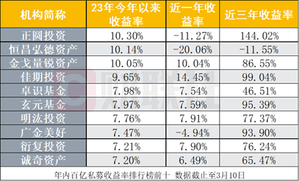 百亿私募“掉队”年内收益排行榜