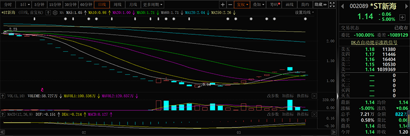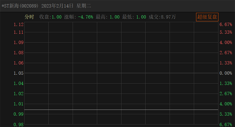 探究可见,*ST新海2月14日一字跌停,收盘价首次跌至1元。