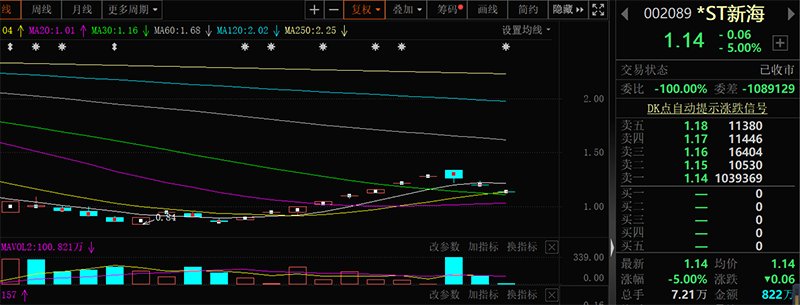 1月18日至3月14日,*ST新海迎来“过山车”行情,连获15个跌停后,又获8个涨停,如今再获2个跌停,期间跌幅最多逼近60%。