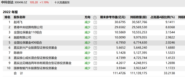 中科创达截至2022年末前十大流通股东中,则有全国社保基金110组合和406组合的持股身影。与2022年三季度末相比,这2只社保基金组合持有该股数量不变,分别为1055.53万股、677.46万股。不过,由于股价期间下行,持股市值有所减少,截至去年末持股市值合计为17.38亿元。