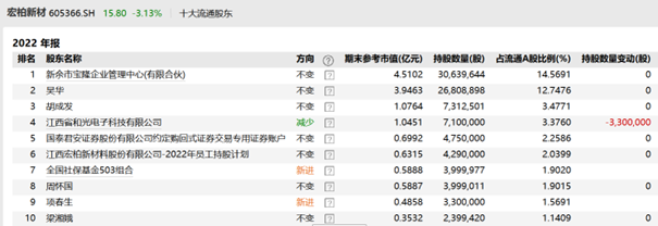 事实上,除了宏柏新材以外,目前社保基金披露的2022年末持股中,还有6只材料行业个股(以Wind行业区分)。截至目前,社保基金已现身在18只个股的2022年末前十大流通股当中,材料行业个股的占比近四成。