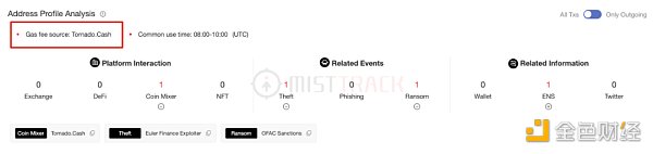 攻击者 EOA 地址 2 的手续费来源是 Tornado Cash。