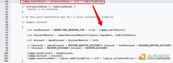 可以看出清算人仅承担较少的债务却可以获得绝大部分的抵押品,这是因为 Euler 的软清算机制:当清算人开始进行清算时,将会根据债务人的健康系数计算折扣。根据这个特性当健康系数越低时,折扣越大,所能转移抵押品越多,最终只要能覆盖本身的债务既可完成获利。