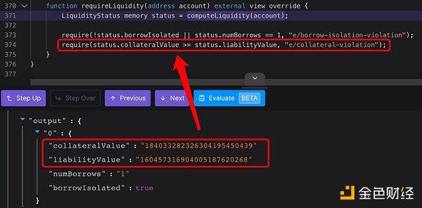 由于清算后 0xA0b3ee 账户获得的抵押品是超过债务数量的,所以能成功通过清算检查。