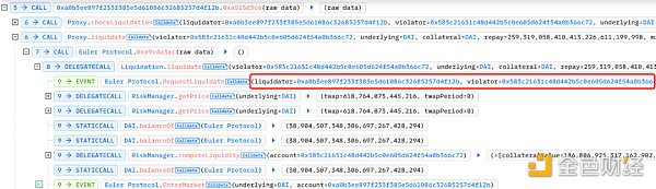 7. 通过另一个子攻击合约 0xA0b3ee 调用清算函数去清算上一步中处于可被清算状态下的账户 0x583c21。