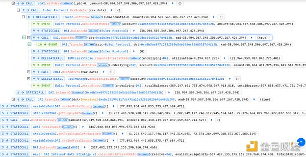 2023-03-13 11:38:11 UTC,攻击者 EOA 地址 1 将获利的 8,877,507.34 DAI 提款到攻击者 EOA 地址 2 的获利地址。