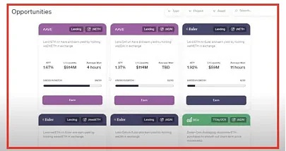 第2步:使用ZK.Money的DeFi 功能,转到http://zk.money/earn选项卡(当前页面功能暂停),尝试几种投资选择(即Aave,Lido或ElementFi);