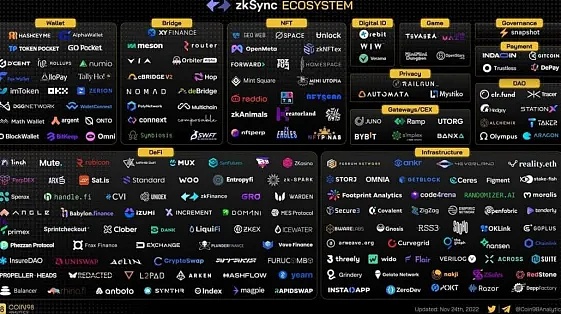 zkSync是以太坊Layer 2项目,2019年由Matter Labs开发,使用零知识(ZK rollup)技术来解决以太坊当前的可扩展性问题,被看作是以太坊扩展的“最终游戏”。zkSync从a16z、Dragonfly、Lightspeed 等公司筹集了超过 4.5 亿美元,是受资助最多的L2公链项目,被看作是加密领域最受支持的项目之一。根据Matter Labs的说法,已有超过150个项目已经部署或愿意部署在该链上。这些先行者带来了6500万美元的 TVL。