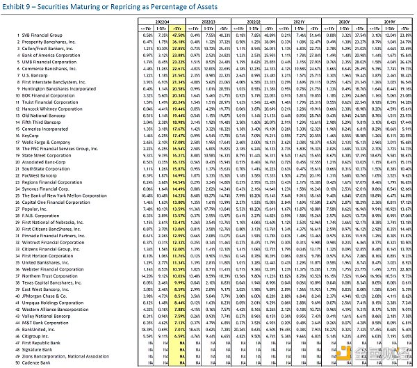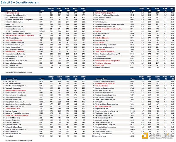 既然我们知道银行挤兑的原因是债务证券头寸严重不足,那么重要的是接下来要检查哪些银行的资产构成中包含大部分证券: