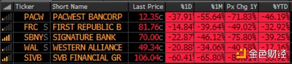 上周五,我们看到第一共和银行(FRC)等“资产敏感型”地区银行出现严重做空。那些被认为更侧重服务科技公司的银行,如PacWest Bancorp(PACW)、Western Alliance(WAL)和Signature Bank(SBNY)也受到了严重影响: