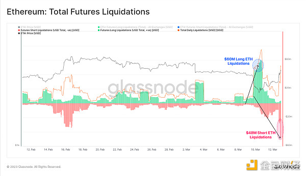 随着银行存款得到保证的消息传出,强劲的反弹将 BTC 推高至 22000 美元以上,将 ETH 推高至 1600 美元以上,让市场的大部分人措手不及。