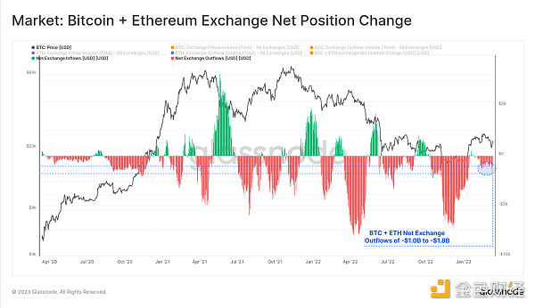 以美元计算,上个月 BTC 和 ETH 的总价值超过 18 亿美元流出交易所。这在相对规模上不一定很大,但是观察到交易所的净提款,尤其是在当前充满敌意的监管环境下,确实说明了投资者信心的程度,这一点值得注意。